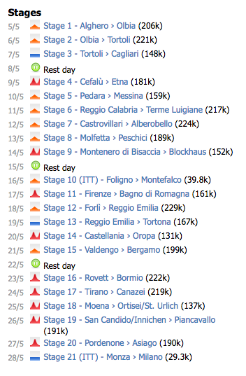 -> METAS - nas 19 etapas em linha, bonificam 10, 6 e 4 segundos os três primeiros classificados de cada chegada.